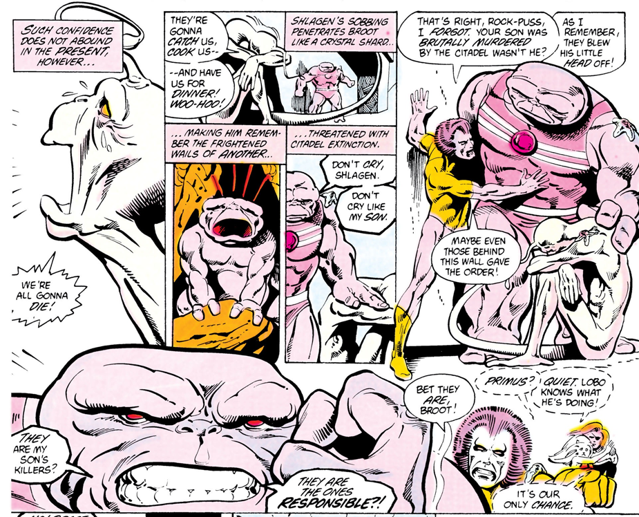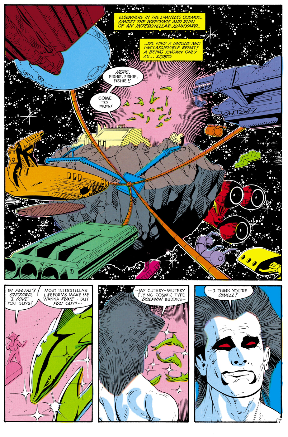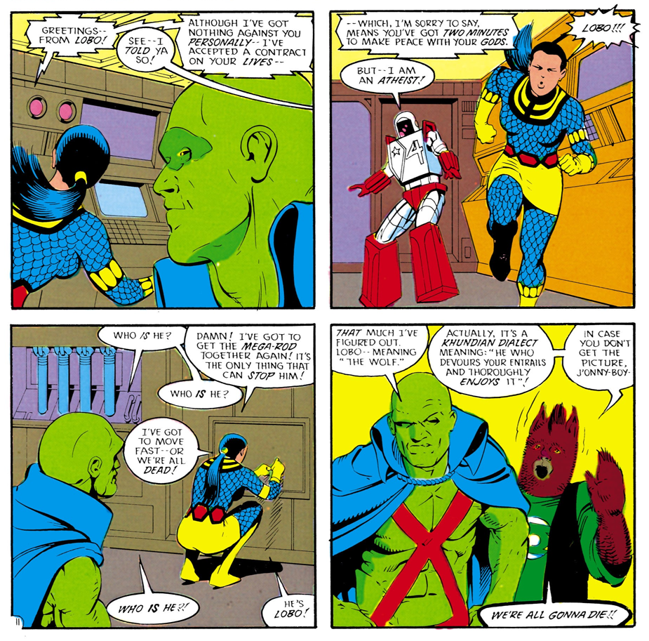 Still, I cannot get over how subdued Lobo is through most of this issue. He’s not even having much fun! Dude just wants to get back to his fishies! It’s only when Barda pricks his ego that he acts a bit more like the homicidal maniac we know today.