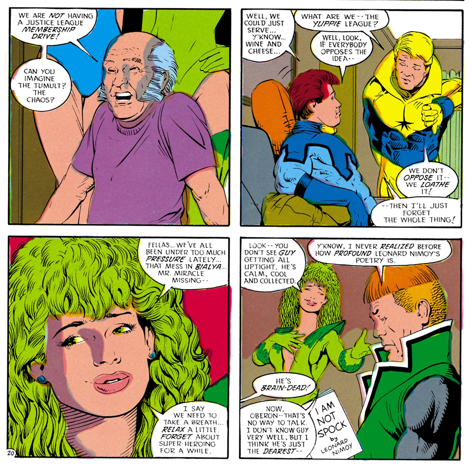 Barda explains she has not atomized Lobo, just teleported him far, far away. No way of knowing where he ended up, could be anywhere in the UNIVERSE, but surely no members of the Justice League will ever run into him again, certainly not in the next few minutes or anything! What a relief.