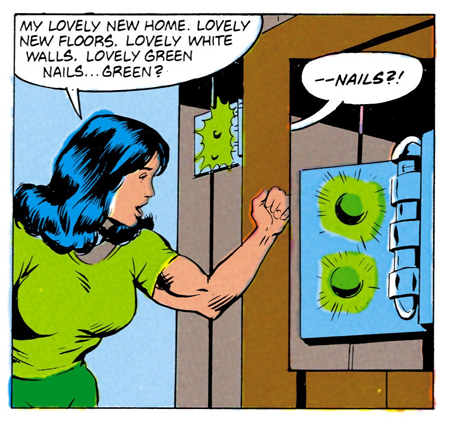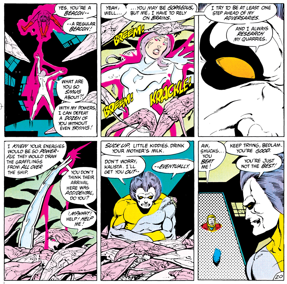 Back on Earth, Blue Beetle is floating a concept that everyone else thinks is stupid, for what seem like snobbish reasons. Green Flame decides to bring the tension down a notch, saying things she’ll soon wish she could unsay.