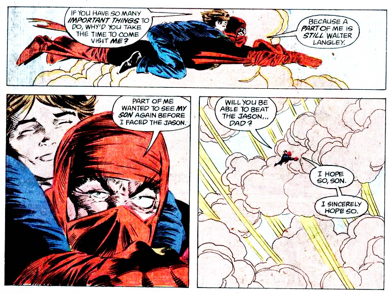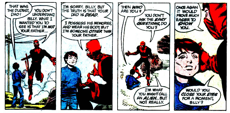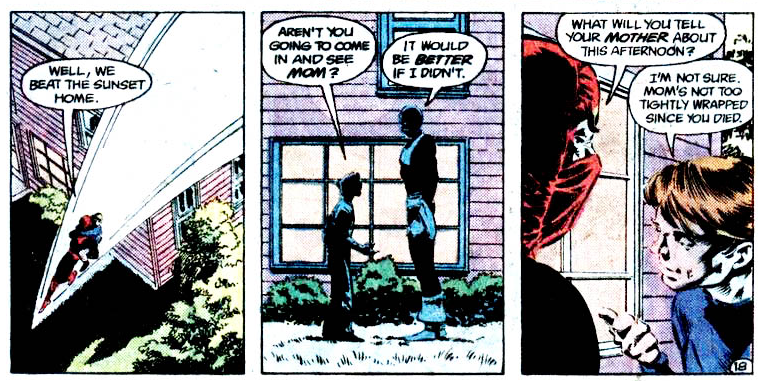 Billy’s mom notices he’s gone from the backyard, but it’s the Eighties, so she assumes he’s just roaming around the neighborhood. Or maybe she assumes a supervillain kidnapped him, just to put a capper on the week of her husband’s death and his corpse getting vaporized. She’s not doing okay!