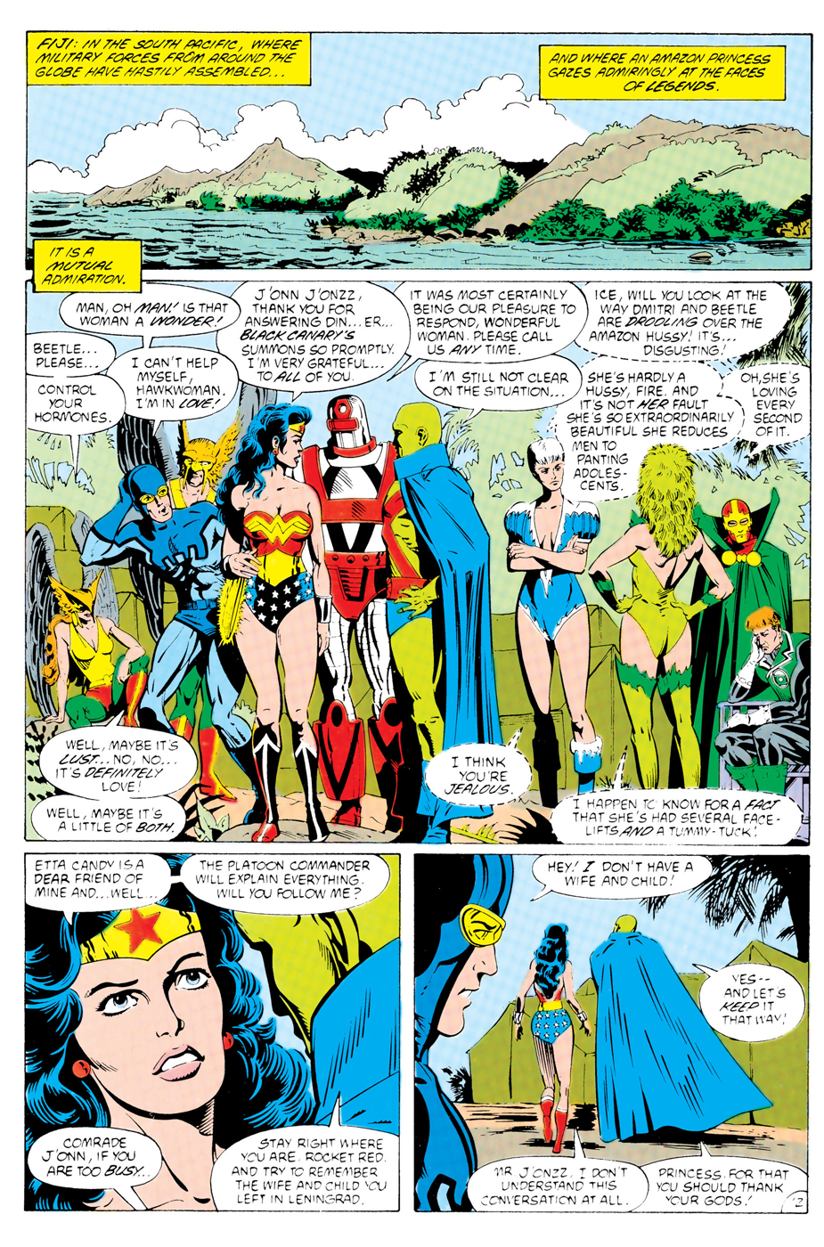 ...he still wrote the scenes that followed from it, so he would've had to read it. And in the following issue, Diana still seems to be very pro-JLI, which doesn’t gibe with the idea that Perez expected the Super Friends, walked into a food fight, and recoiled in horror.