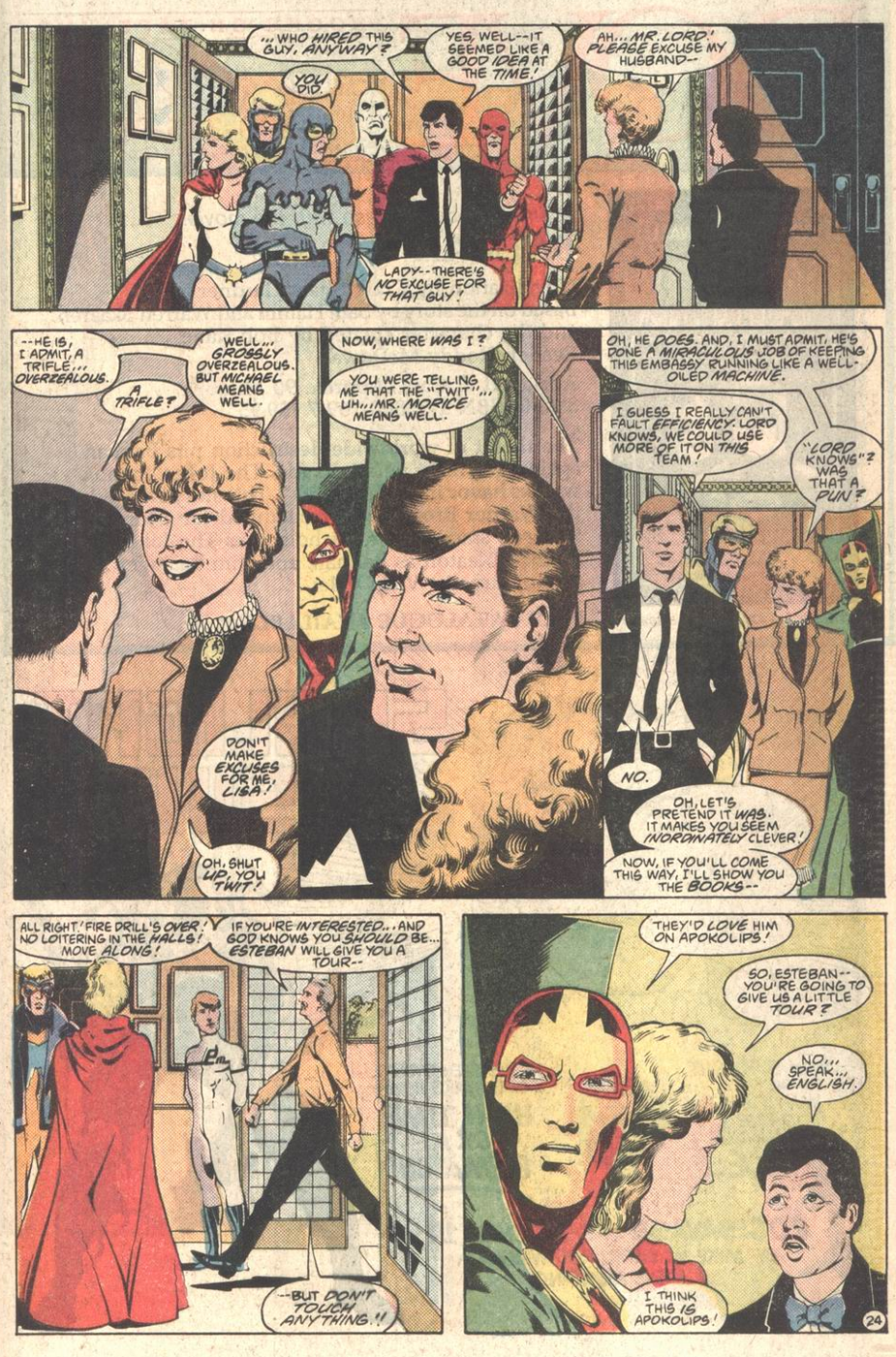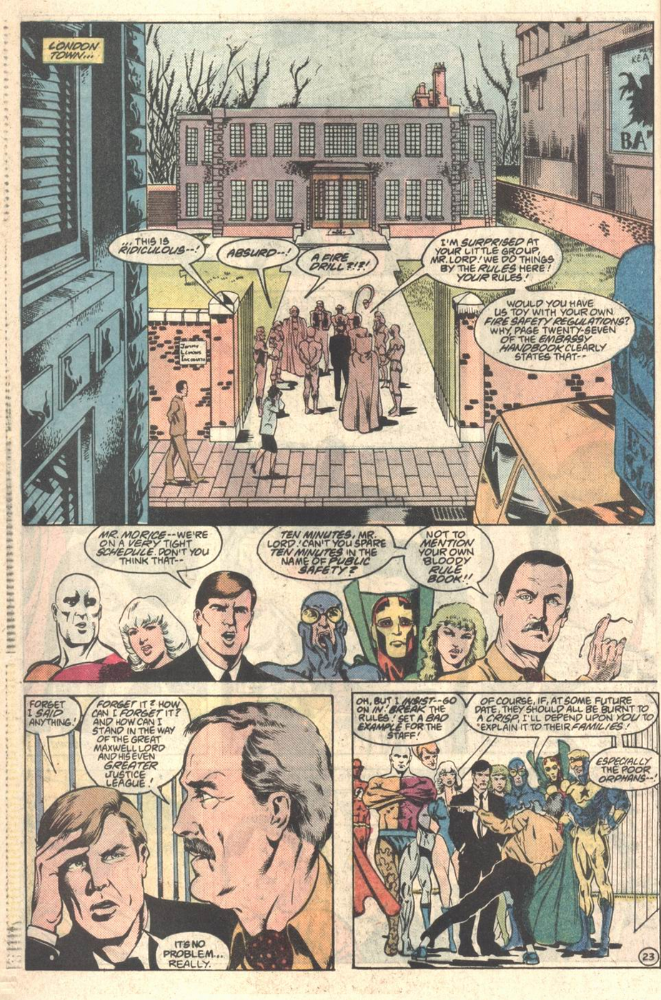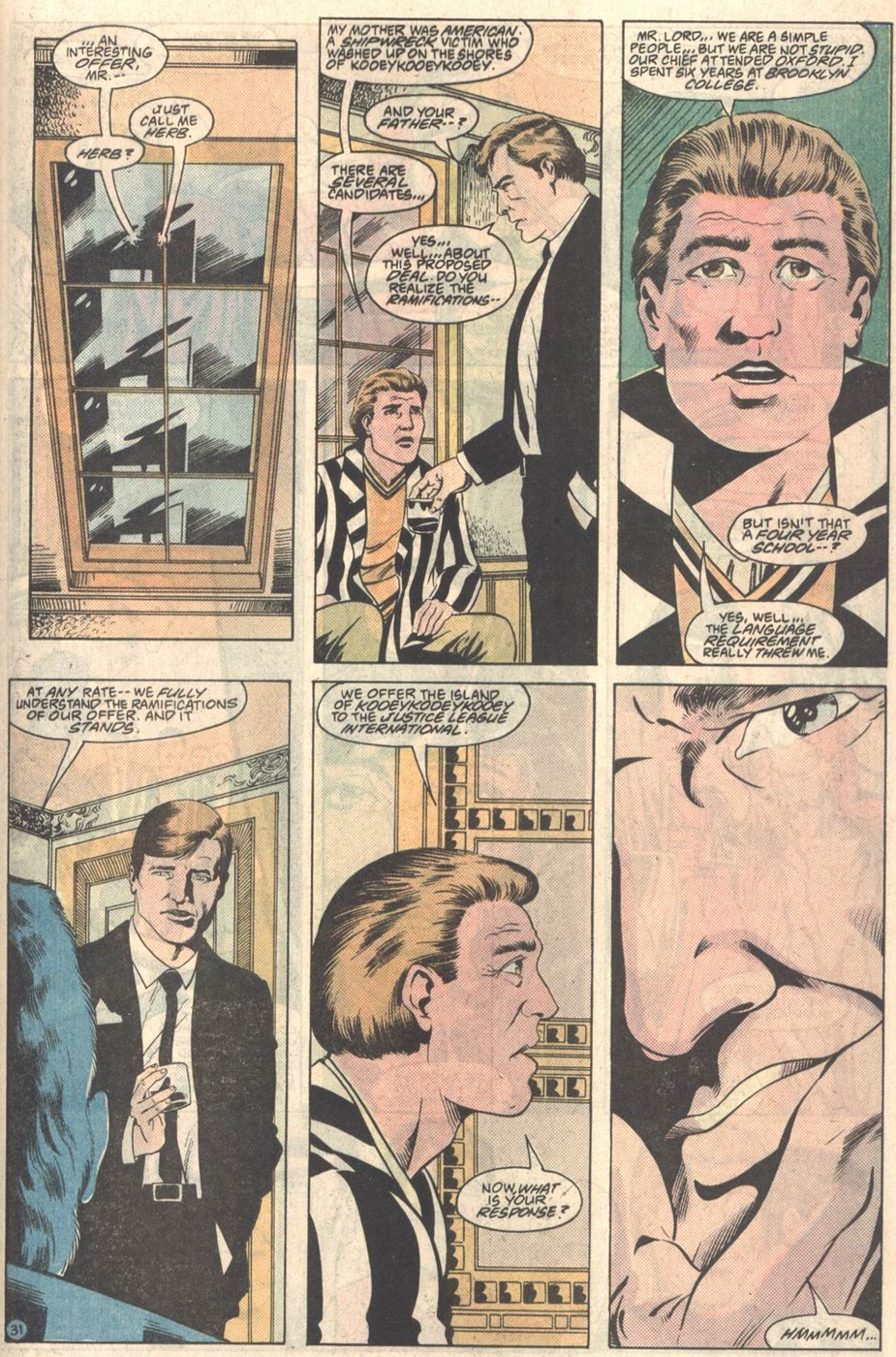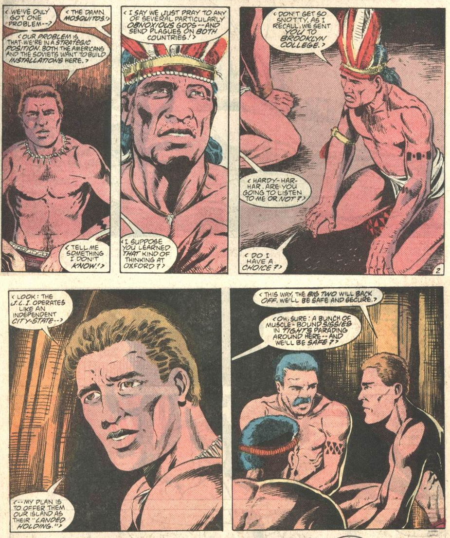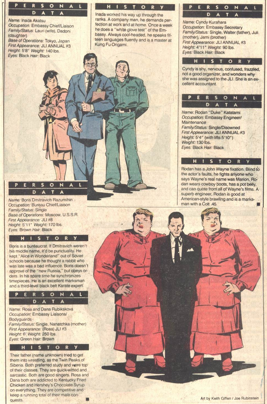 This annual’s main story is about planting seeds. It introduces a whole new cast of characters to serve as story anchor points, associated with the JLI embassies outside of New York and Paris--including one new embassy founded in these pages. Some of these characters would be focal to multiple Giffen-DeMatteis plots; some would get cameos of varying interest; some would never be seen again. Most would be utterly forgotten after Giffen and DeMatteis left.