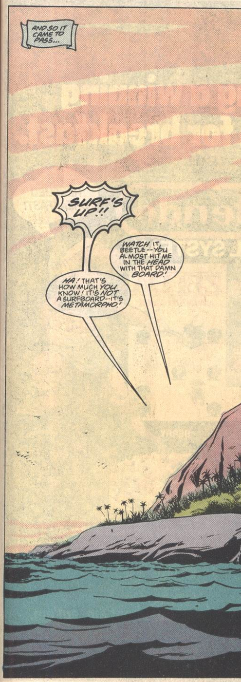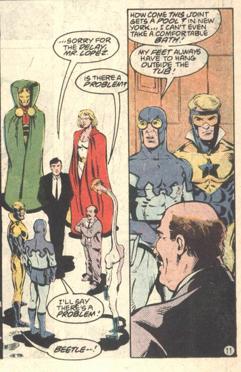 That allows Giffen and DeMatteis to explore two of their favorite internal conflicts: Beetle the jokester who can get dead serious when you least expect it…