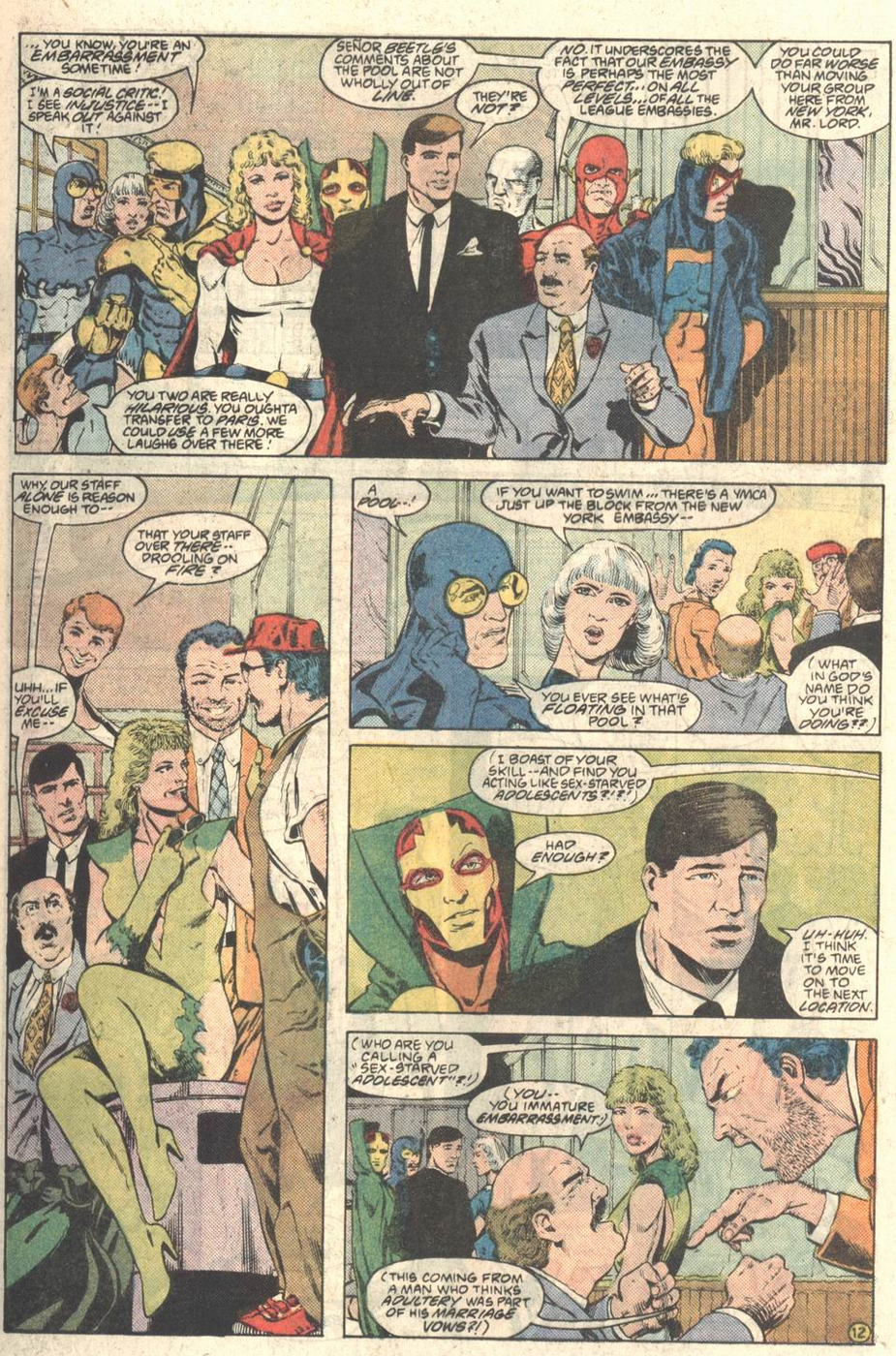 But not much will come of this. The JLE members weren’t attached to Cap’s fake backstory to begin with, Beetle doesn’t have the social capital to do much about his resentment, and he’ll work with Atom again without drama in Giffen and DeMatteis’ final story, “Breakdowns.” The only real price Atom will pay is his friendship with Oberon, which already got strained after Atom moved to Paris (JLI #19, #24; JLE #1)…