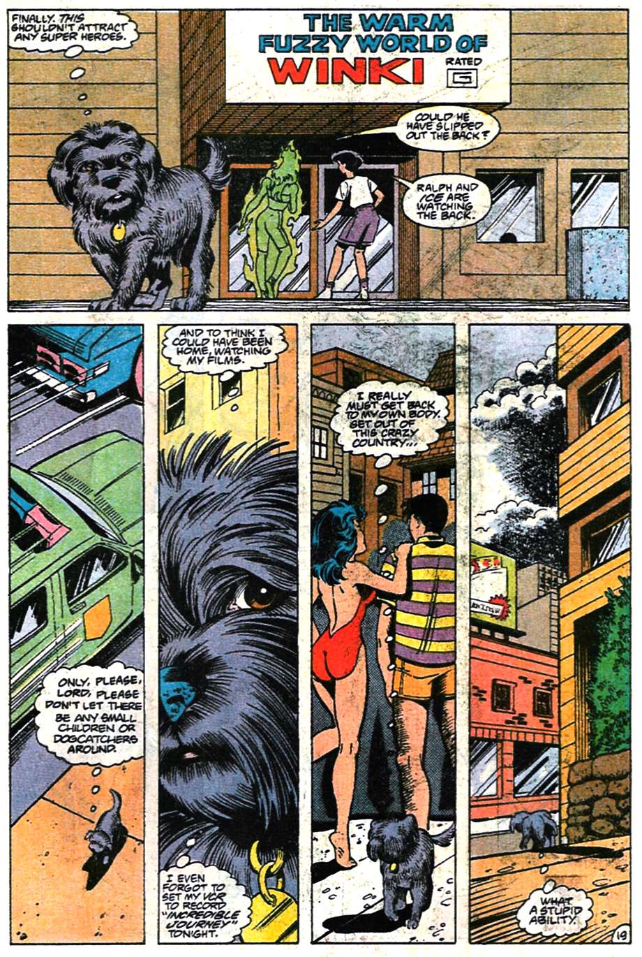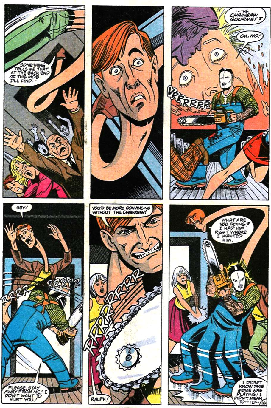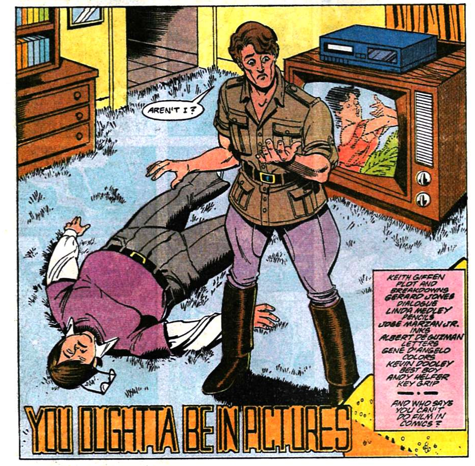 No, I haven’t lost track of my numbering. These two “inventory stories” were published later on, but they seem set around here in the chronology. The first is the first Keith Giffen-Gerard Jones writing collab, with art by the underrated Linda Medley. Her style wasn’t as attention-getting as the works of Kevin Maguire, Adam Hughes, or even Bart Sears, but her down-to-earth approach syncs with the down-to-earth aspects of Giffen’s plotting. She’d do some more League work and go on to her own indie series, Castle Waiting.