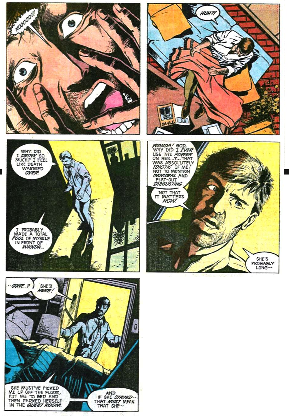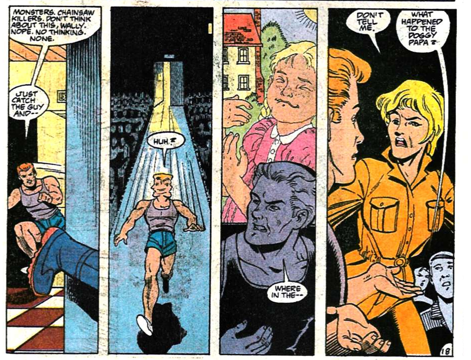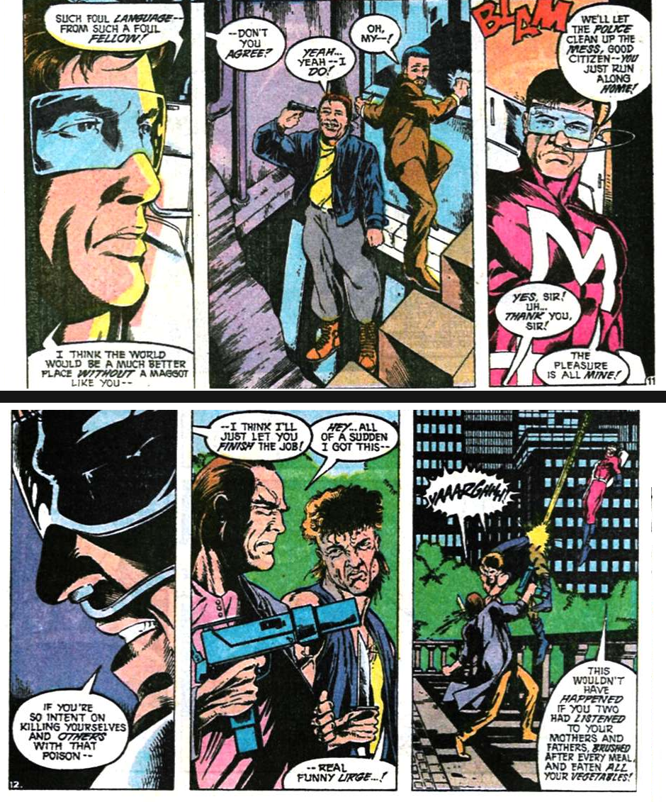 When Max rises again, he does so as Maximum Force, a SUPER-HERO 🦸 who uses his power “to war on evil wherever it rears its head.” He leaves Wanda to go on a short patrol and--in the clearest sign yet that this is a dream sequence--she promises to wait up for him. Maximum Force’s dialogue is Adam West, but his attitude is pure Punisher.