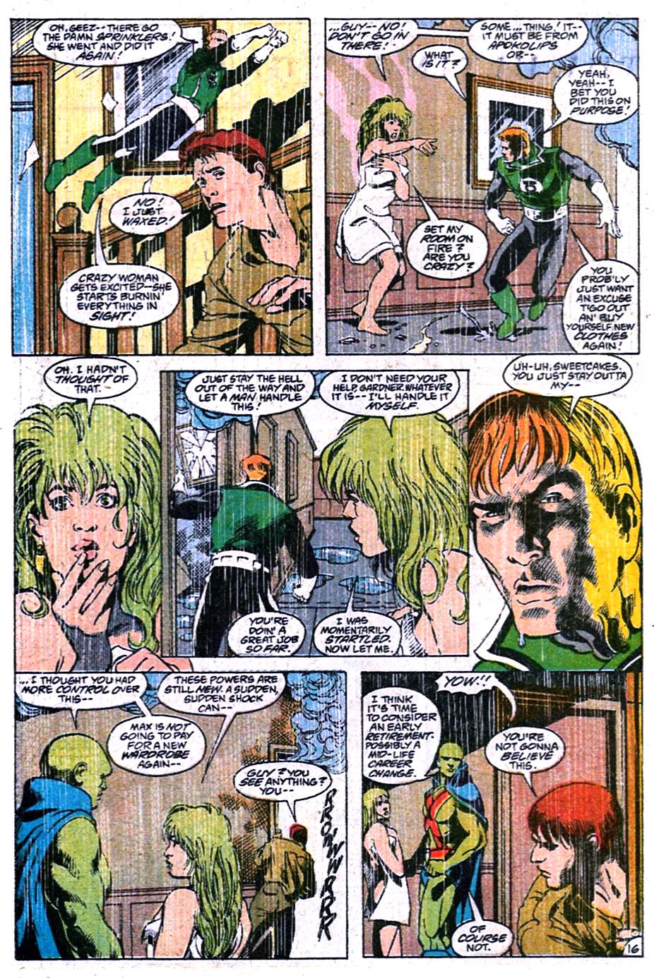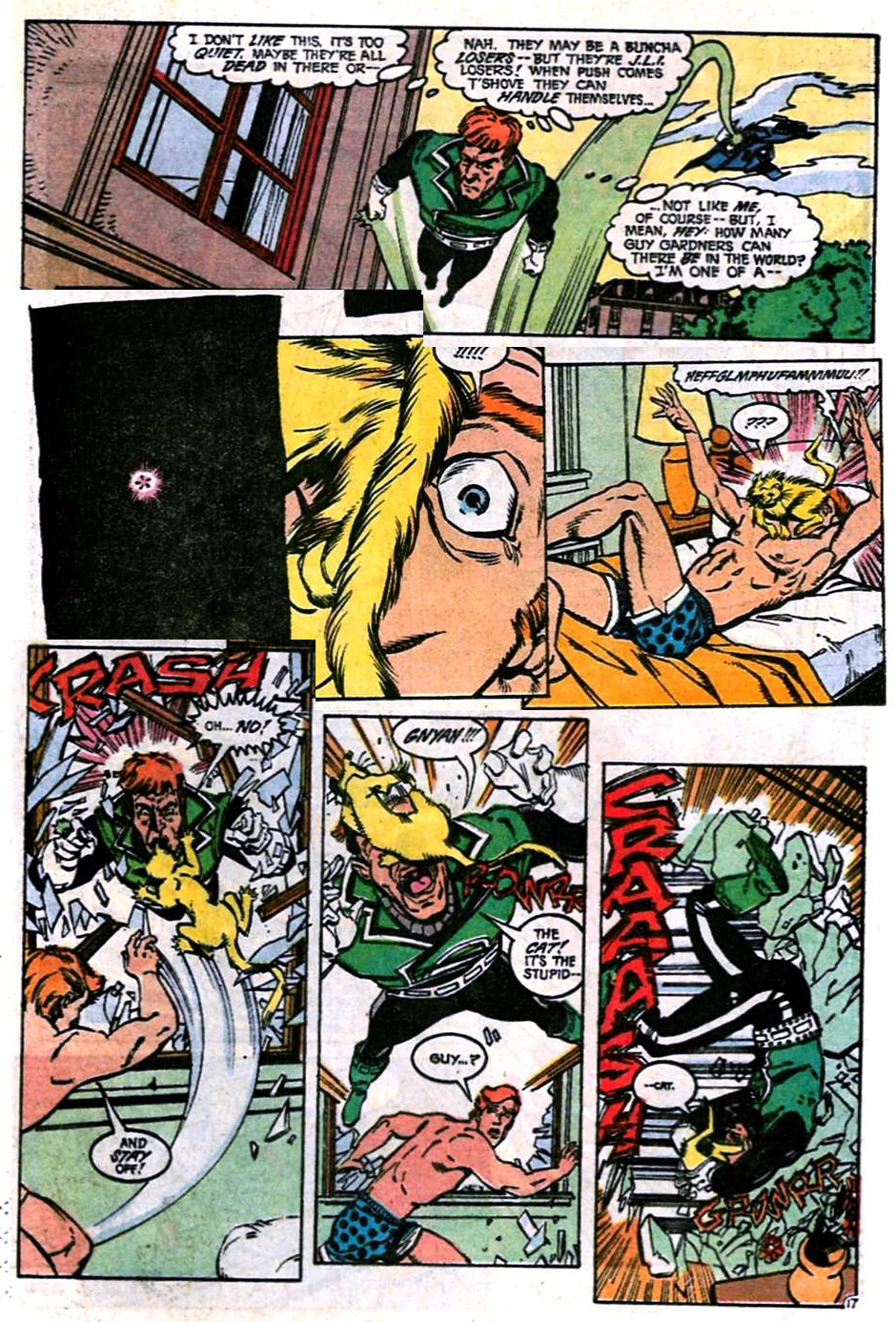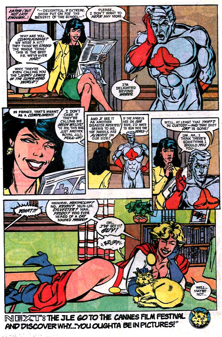 The JLA come charging into Paris in response to the red alert, and the fact that they can’t detect anything wrong in the JLE embassy only worries them more. They send in Guy for reconnaissance. This puts our two redhead jerks in a scene together and deals out karmic retribution to them both: