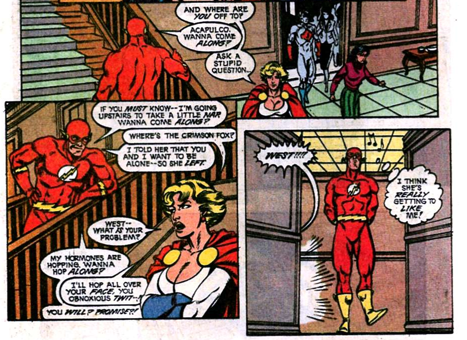 I’ll concede this dialogue has a certain flair, but I can’t be as forgiving to Wally as I can to Guy or Ranma. Even pre-Linda…c’mon, Wally. You’ve had relationships with women. Francis Kane? Tina McGee? You’re smarter than this.