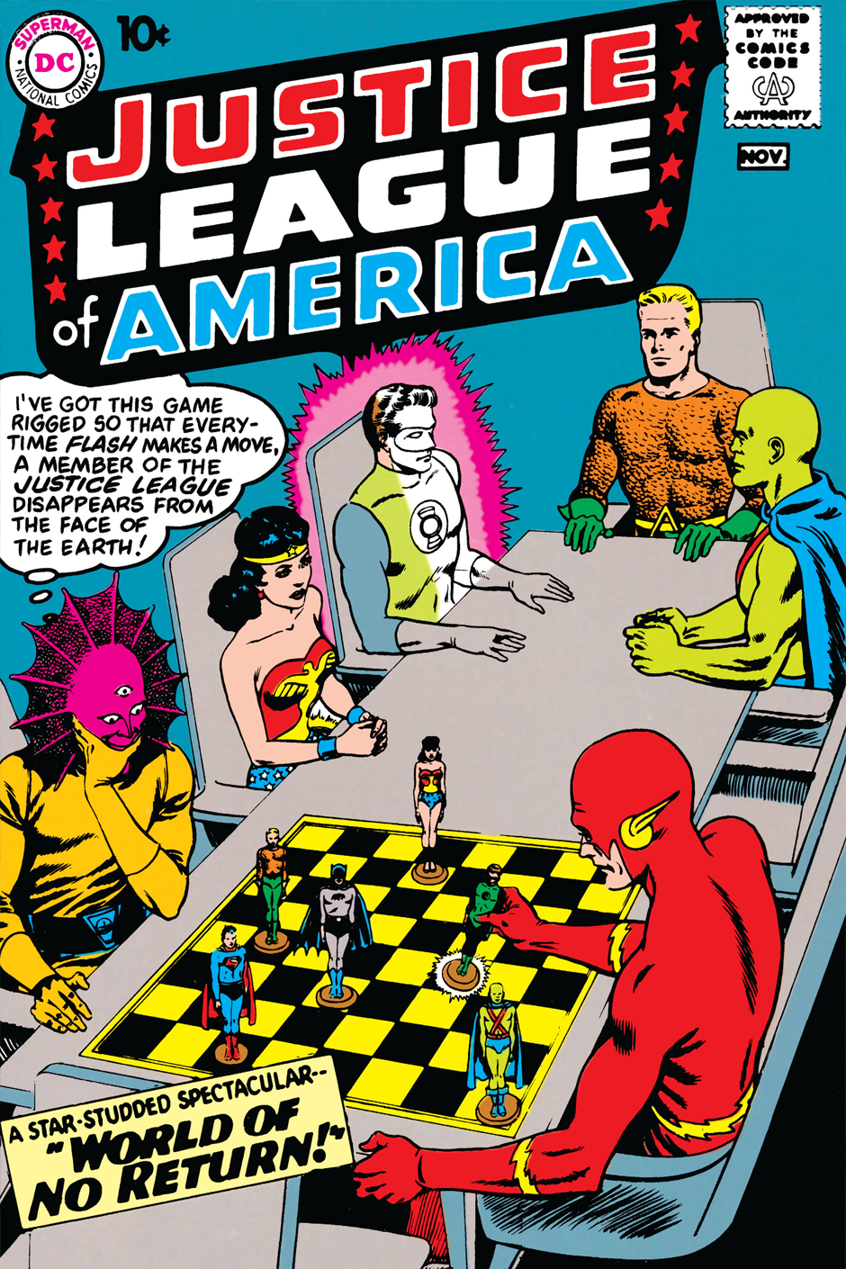 …some of the tension remains. And if you “read” this cover as being about Despero, that tension is fully deserved. Despero was one of the Justice League's earliest foes, appearing in Justice League of America v1 #1.