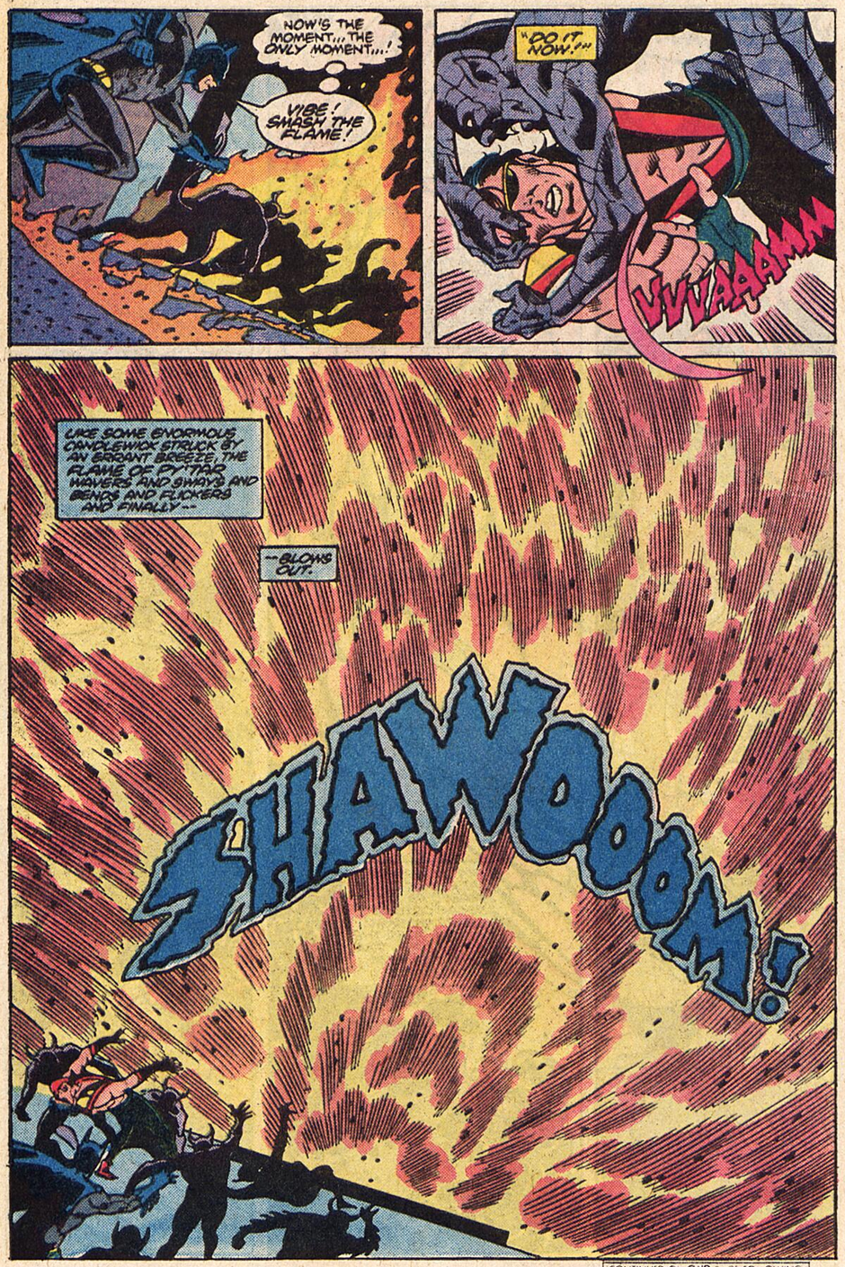 Flash and the Crimson Fox are in the Justice League’s “Menace Chamber” (legally distinct from a “Danger Room,” see documents submitted to the International Court of Justice). Their job is to give the kids a little super-power demonstration…