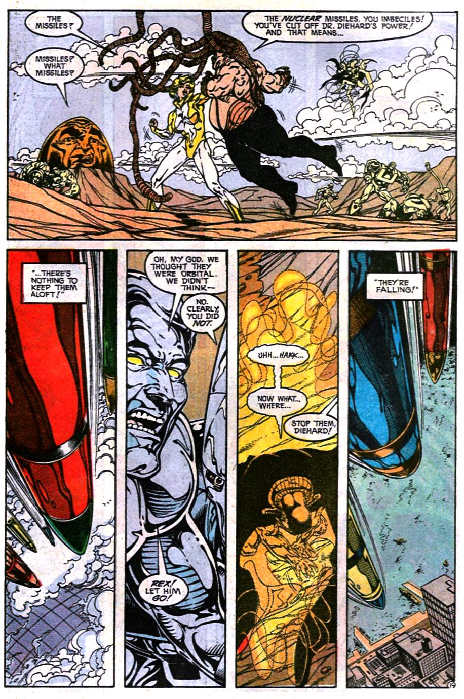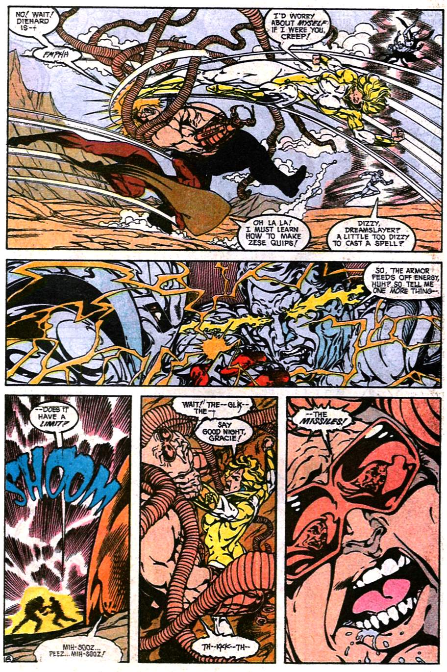 The JLE is right behind Metamorpho, attacking before the Extremists can break Diehard free.