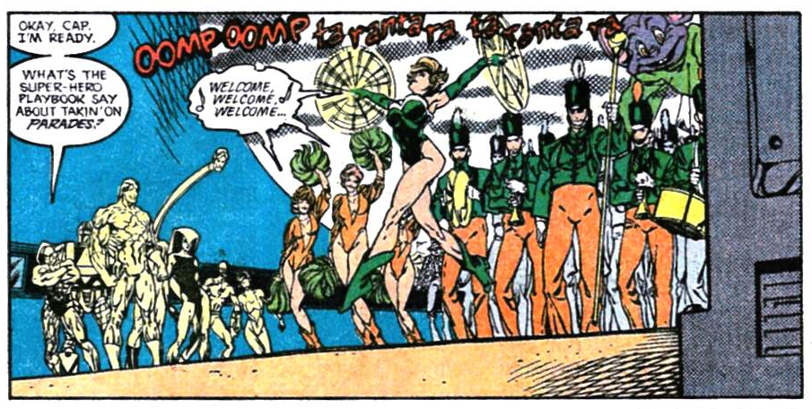 Cap asks Bluejay to brief him and the others on the Extremists, giving them enough intelligence to maximize their chances of victory. This seems like the smartest thing he can do, and it sure helps. But there’s something even Bluejay doesn’t know about the Extremists. Something important. We’ll get to it.