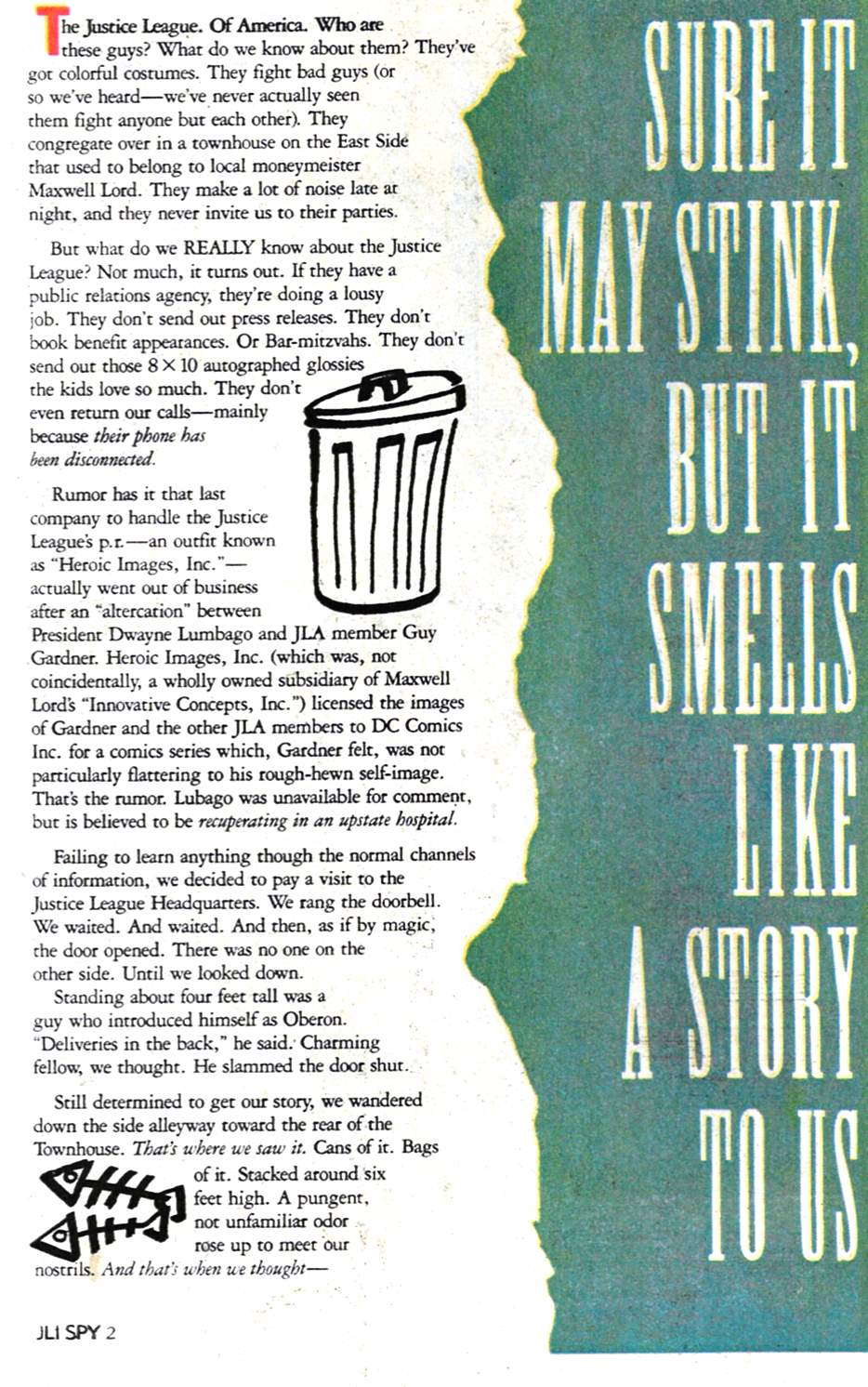 We first met said reporter digging through the League’s garbage in Justice League America #35…
