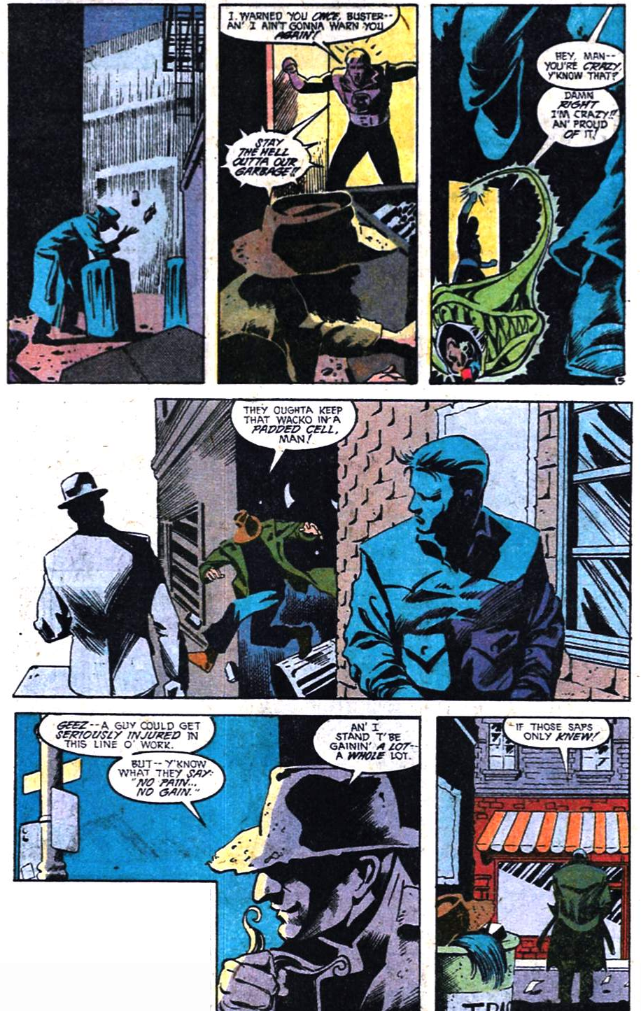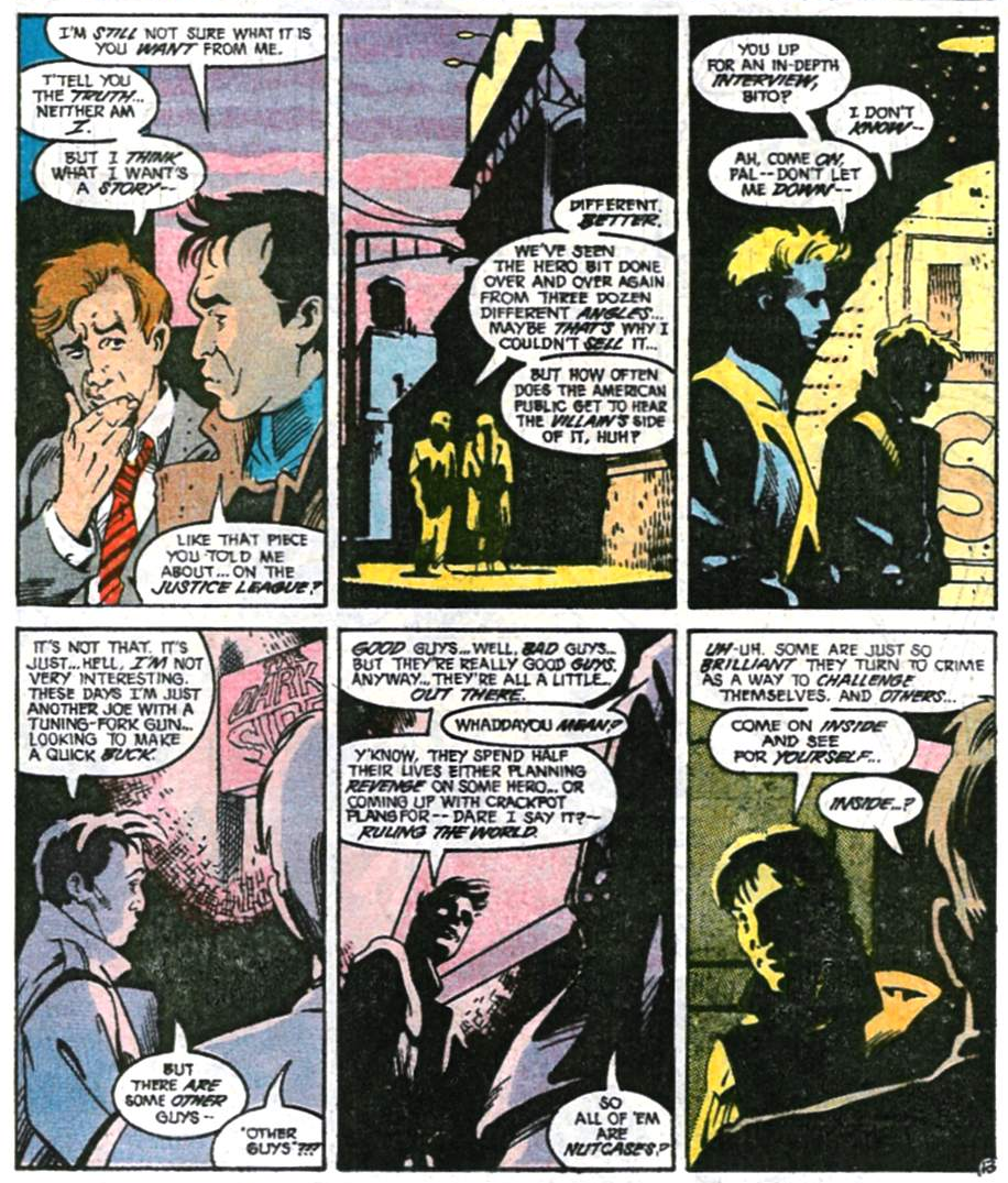 He’d turn up once more in Justice League Quarterly #12, blowing the whistle on a staged super-fight. Bottomfeeders have their place in the ecosystem.