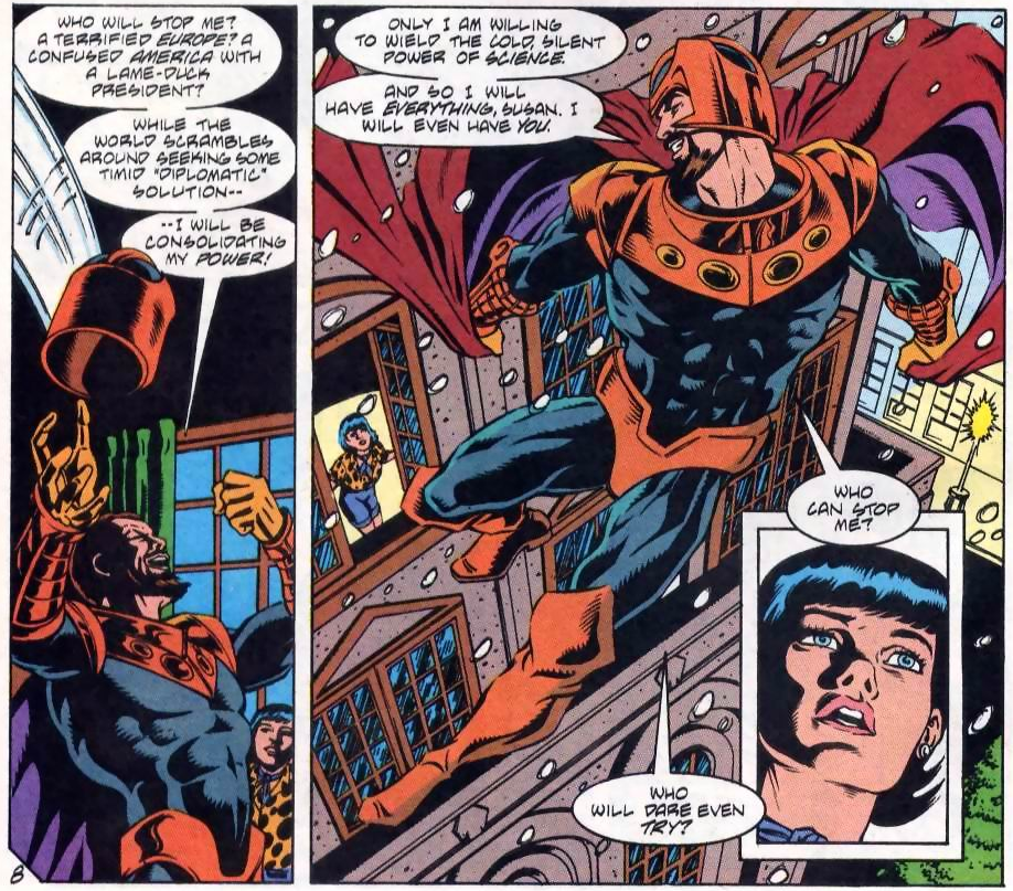 Back in 1990, this probably played as a refinement on the heroic power fantasy: “Wouldn’t it be great to be rich and have all kinds of soft power as well as punching people in the face?” But in 2026? It’s a little more disquieting. Gotta be honest, I do not miss the Crimson Fox.