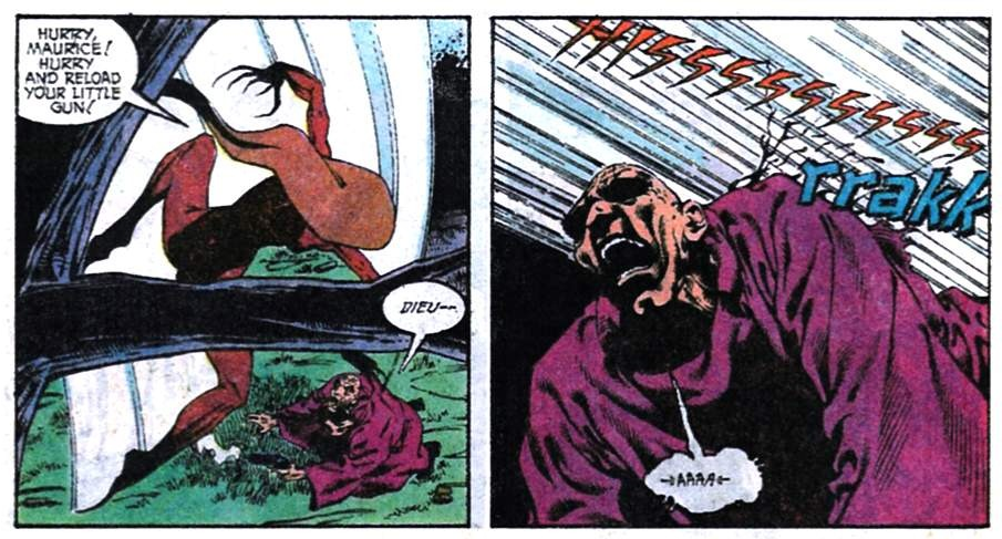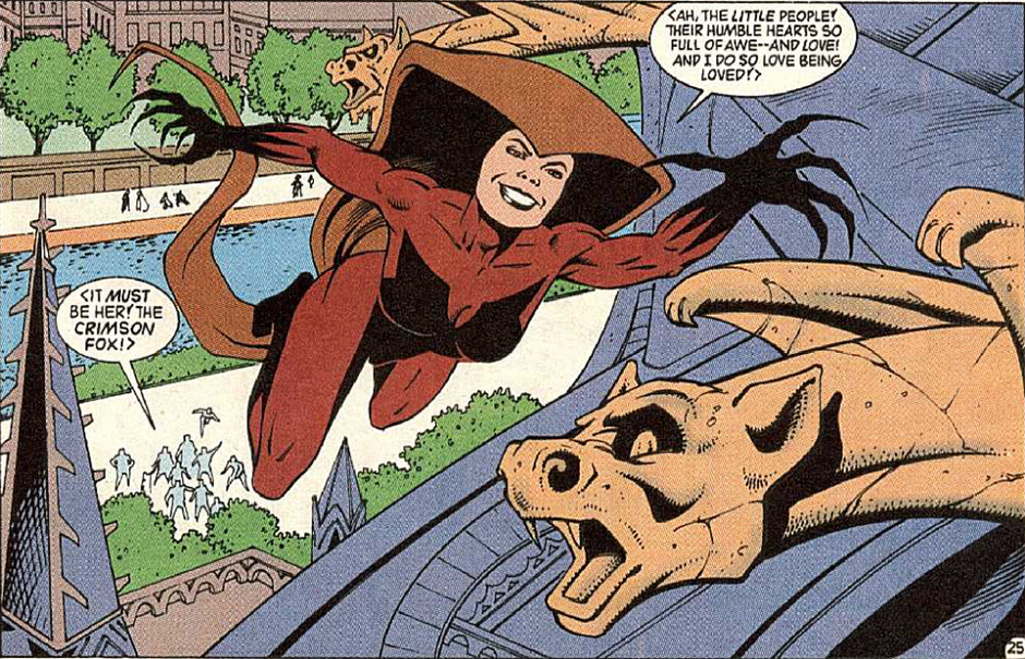 Neither sister made it to the 21st century. A third Crimson Fox surfaced for a while, somehow inheriting their fortune and exhibiting the same abilities, but faded into obscurity before she could explain herself. Below: her sole spotlight appearance.