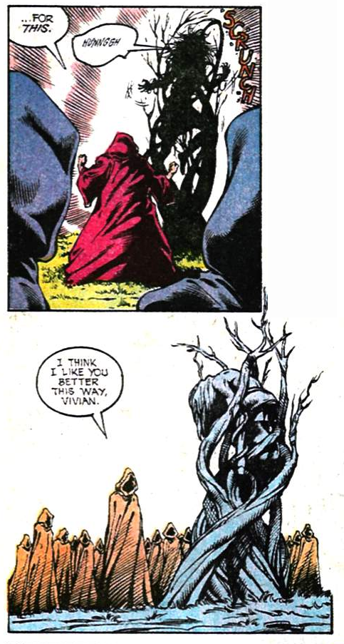 Puanteur and his cult have secured Constance to the top of a Revson plant, while the JLE discover more giant worms under the earth--lots more. They’re dormant for now, but any attack on one could agitate the rest. The Silver Sorceress could zap them into limbo, but only one at a ti--