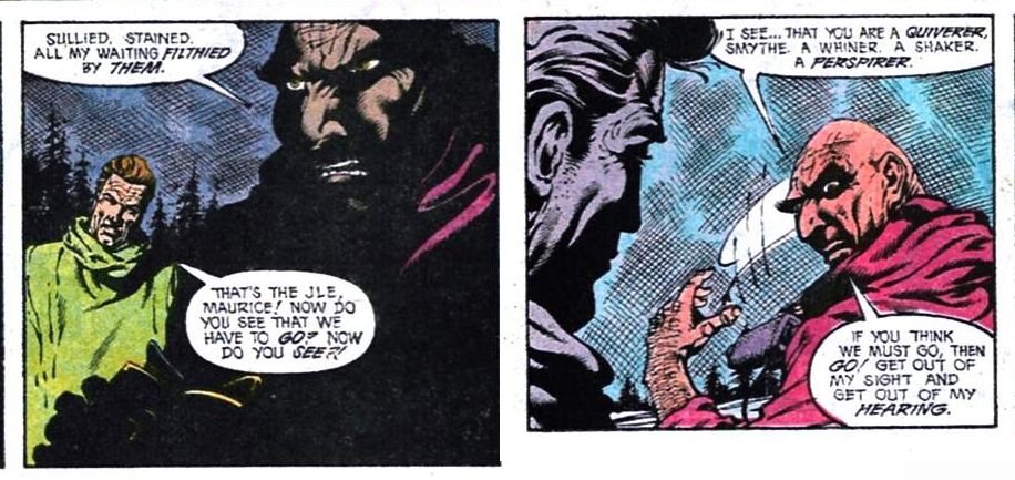 The worms are doomed, dissolving in the sun faster than slugs in…well, we’ve had enough gross imagery for today. Smythe, who stole the clapper when Maurice wasn’t looking, now takes charge of the cult and resolves to lead it back to the ancient ways--the ways of humility and self-denial. The JLE celebrates a rare easy win. Although Cap snaps at the Crimson Fox for breaking ranks, Constance-as-Vivian testifies that Fox was just protecting her. Which is true enough, as far as it goes.
