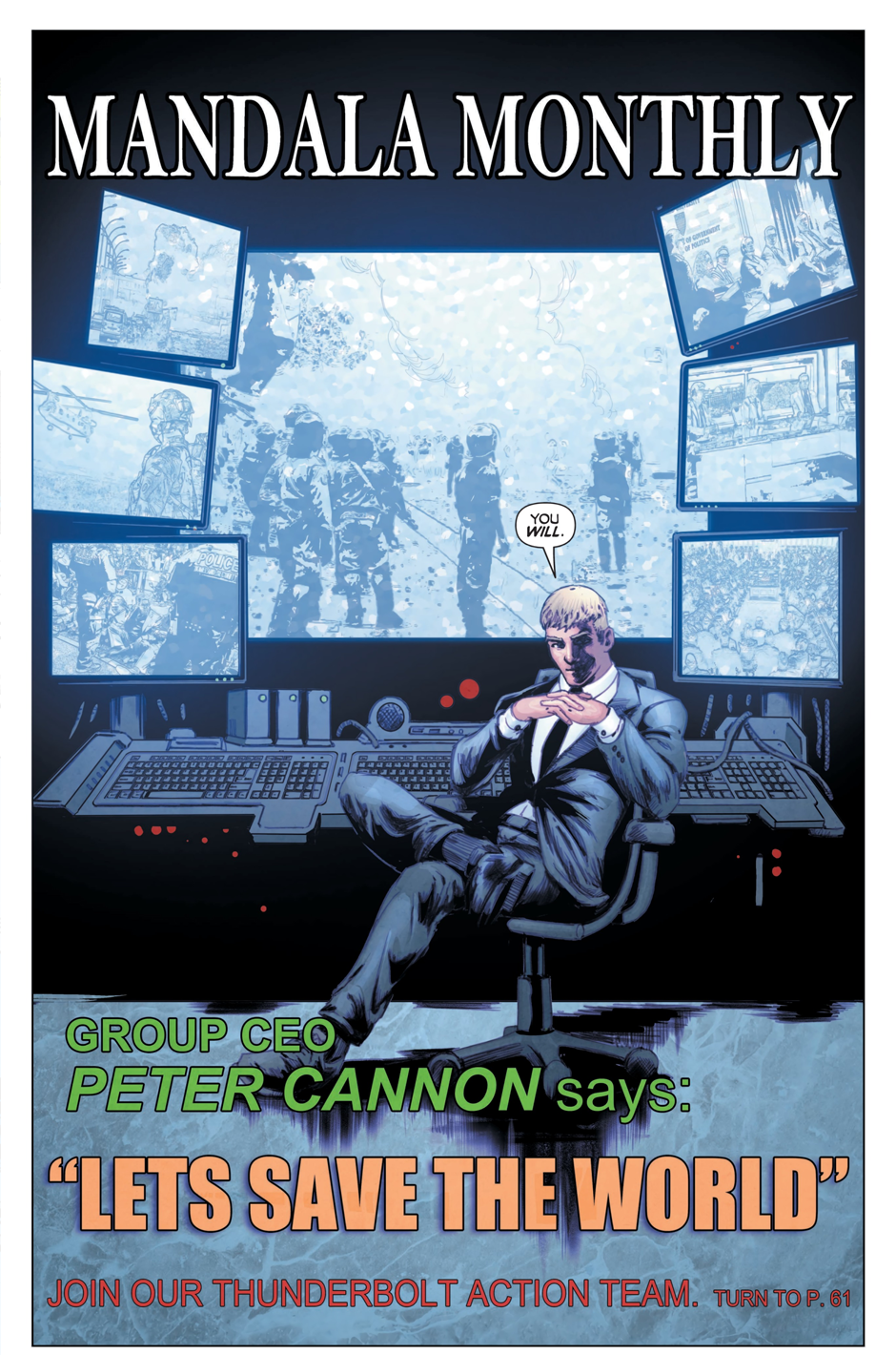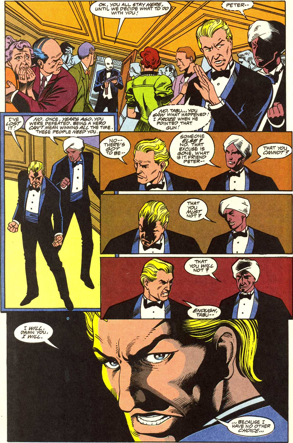 Collins seems to set Peter Cannon up as the most determined person on Earth, the one Batman looks at and goes, “I wish I could focus like THAT guy.” So it’s odd that in the first issue of Peter Cannon: Thunderbolt, Peter gives the heck up. In front of another determination-based hero, no less!