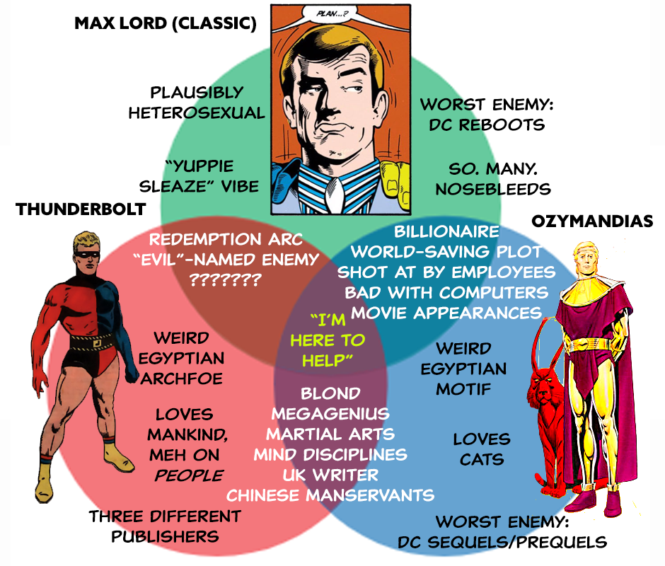 Why is that weird? Because Watchmen revised Cannon into Ozymandias, whose scare-the-world-to-save-the-world plan drew comparisons to…the early Max Lord. Yet Lord and Cannon have almost nothing in common.