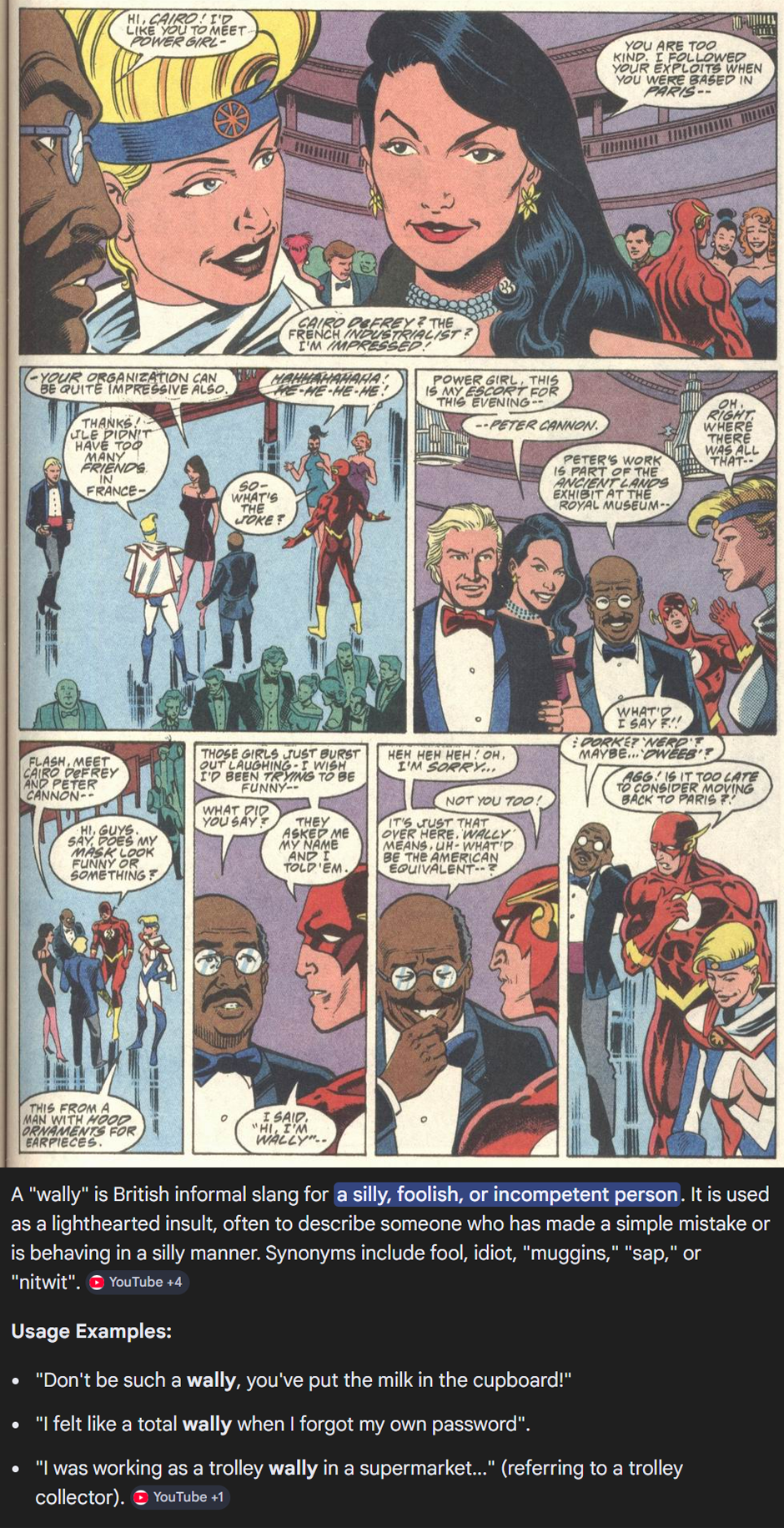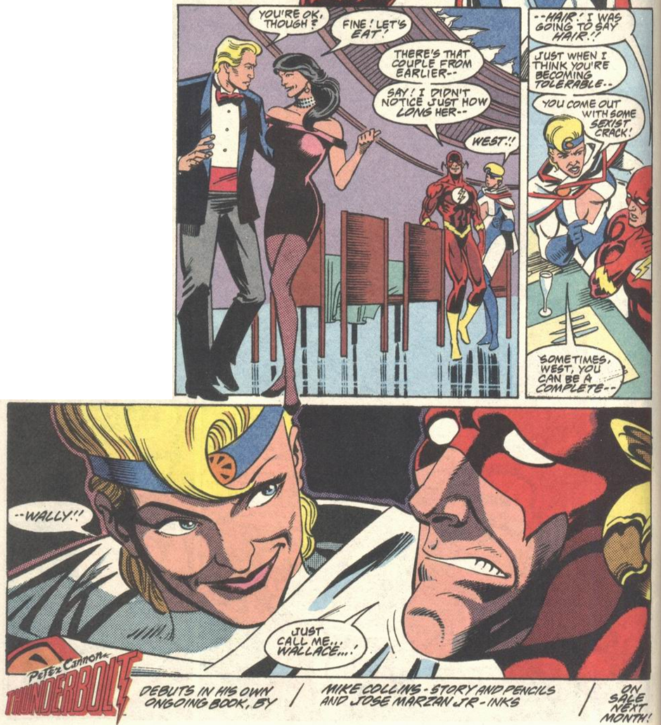 This story is by writer-penciller Mike Collins (a UK native who’d probably been snickering at that “Wally” thing for years. The last page reveals it’s a backdoor pilot for Collins’ Peter Cannon, Thunderbolt series. But it also gives us an enjoyable, JLI-focused punchline. I can forgive the "horndog Wally vs. brittle Kara" scenes when they end like this: