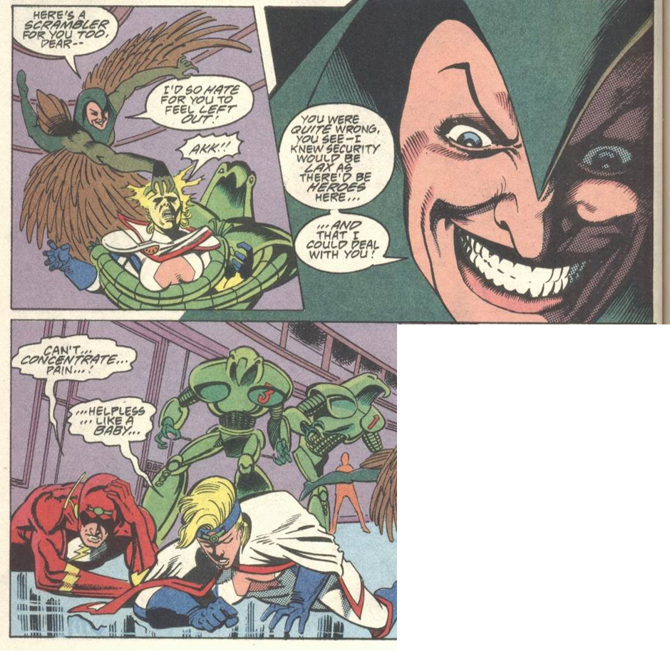 I’m including Justice League Quarterly stories through #10 because they were mostly written like Giffen-era inventory stories with a few superficial changes. As Power Girl and Flash attend a British function, the only clue that we’re in the post-Giffen days is that Power Girl’s costume has…somehow…gotten even worse. The bar isn’t high when her best-known costume is “Look at My Power-Breasts,” but “Green Lantern Villain” still beats “Dominatrix-Themed Toothpaste Commercial.”