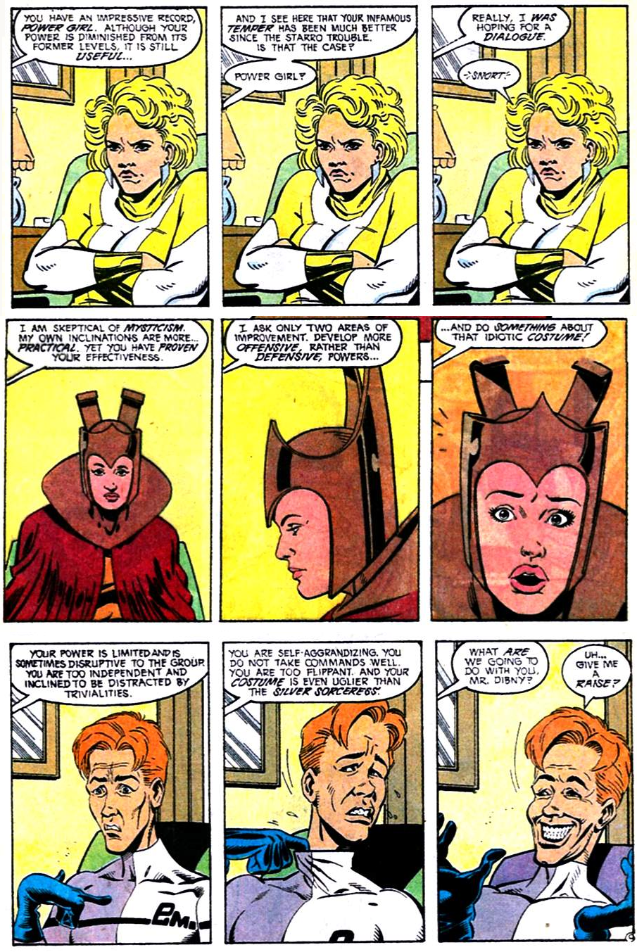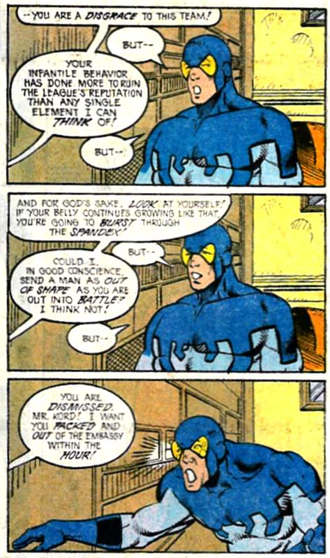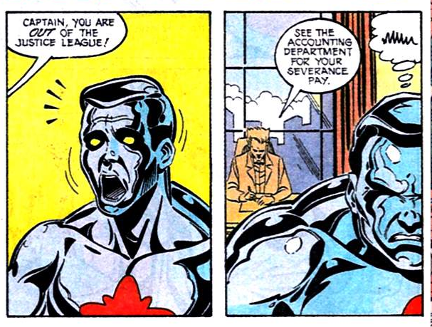 Heimlich brings in two new members to replace Beetle and Ice: the Tasmanian Devil and the Japanese Doctor Light. Their tenure (Light’s second, his first) will be such a nothingburger that I’m not even going to show them here. Both would be back in post-Giffen issues.