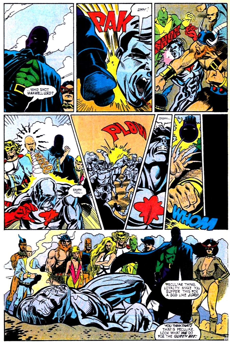 Oh, no, not…wait, who is that? From later issues, I know he’s supposed to look like the very dead Rumaan Harjavti, which would indeed be gasp-worthy. But Darick Robertson’s pencils just aren’t close enough to Kevin Maguire’s (or Keith Giffen’s, or Bill Willingham’s) for us to look at an average husky beardo and go, “oh, wow, it’s him!” Maybe if Gene D'Angelo had colored his hair and beard the same way he colored the original (black with blue highlights, like Silver Age Superman)?