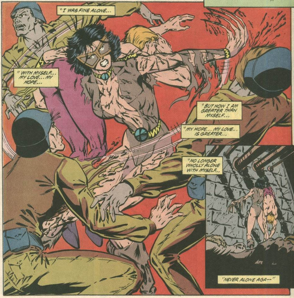 As the soldiers at last seem about to overwhelm the cornered and exhausted Owlwoman, they see something behind her and scamper off like rabbits. She looks over her shoulder, and...
