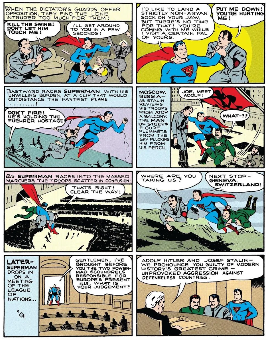 That Golden Age "how Superman would end the war" story... am I right in assuming that came out while Nazi Germany and the Soviet Union were still allies? Otherwise I could see Superman having to explain to FDR why he'd apprehended a key Allied leader along with Hitler.
