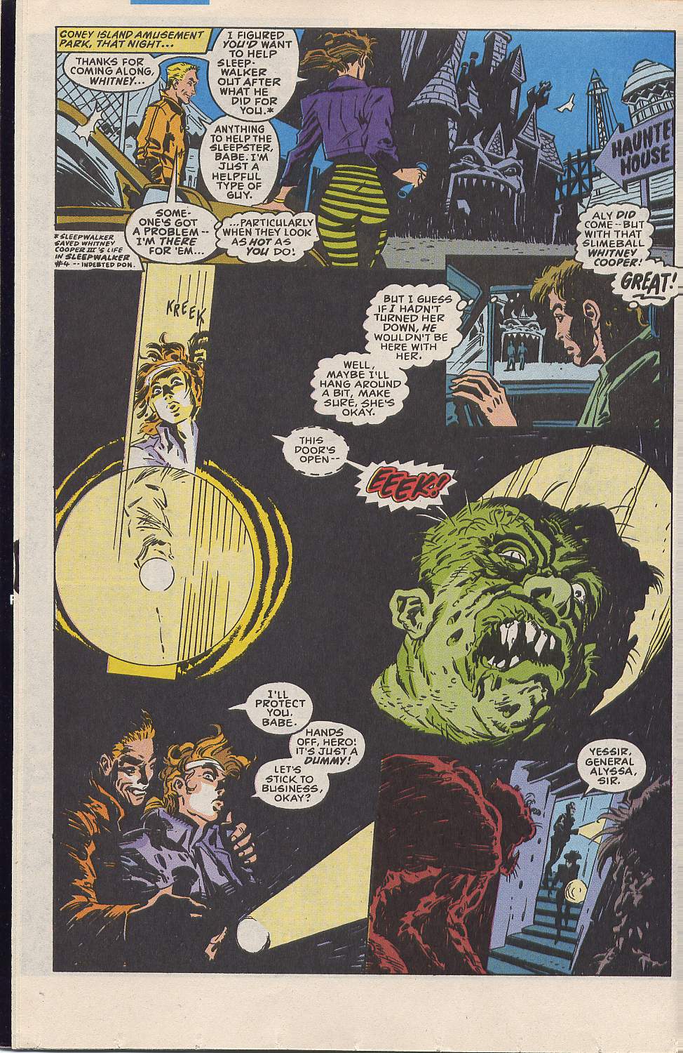 Deathlok's computer senses a power surge in the haunted house area, so he leaves to investigate. Meanwhile, Rick dozes off, allowing Sleepwalker to investigate. Alyssa spots Deathlok, causing her to scream.
