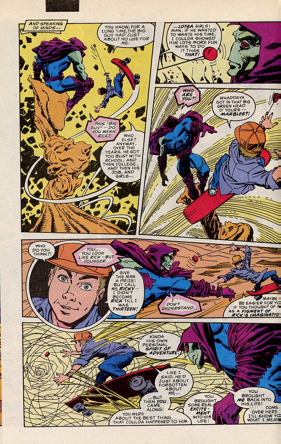 Ricky shows Sleepwalker various heroes that Rick used to look up to as a child that he hasn't thought about in years. Since Rick found the truth about Sleepwalker, he's been reminded that he could be a hero. But now Sleepwalker is running away from a problem, which is not something Rick's childhood heroes would do.