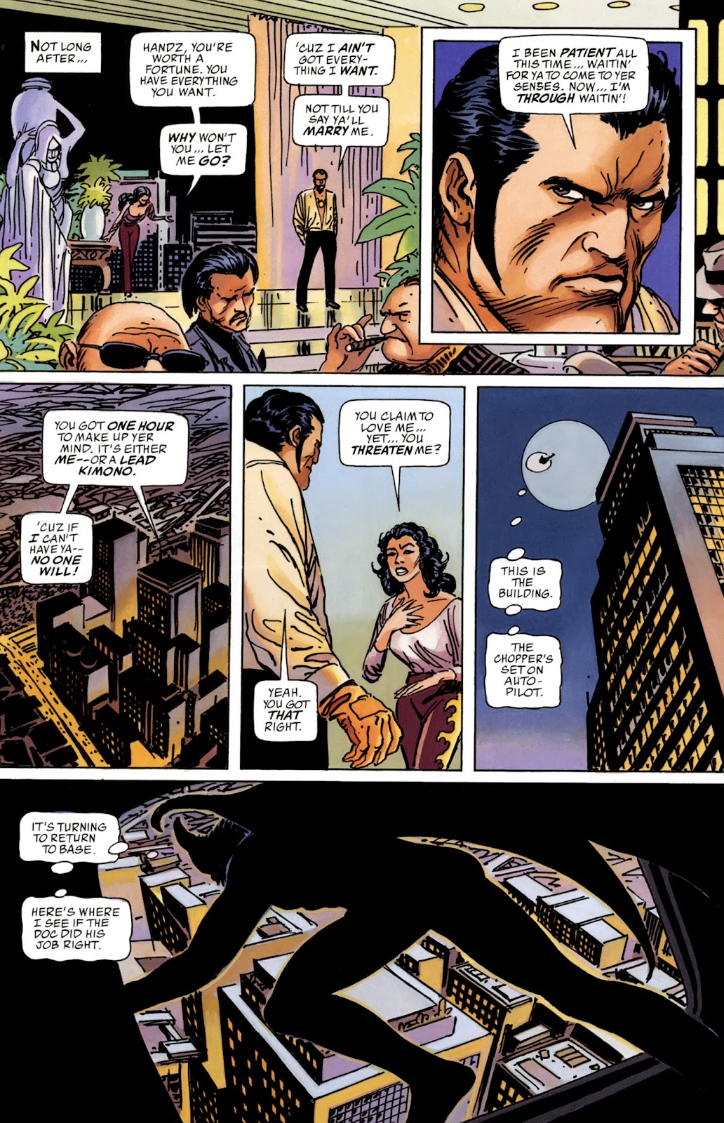 Over the months the bat becomes more and more comfortable with Wayne as outside Handz gains more and more power and influence. Wayne also befriends fellow inmate Frederick Grant, a scientist who was arrested for attempting to damage the machinery of a factory that was polluting a river. With Grant's encouragement, Wayne dedicates his time to developing his mind and body with the prison library and gym.