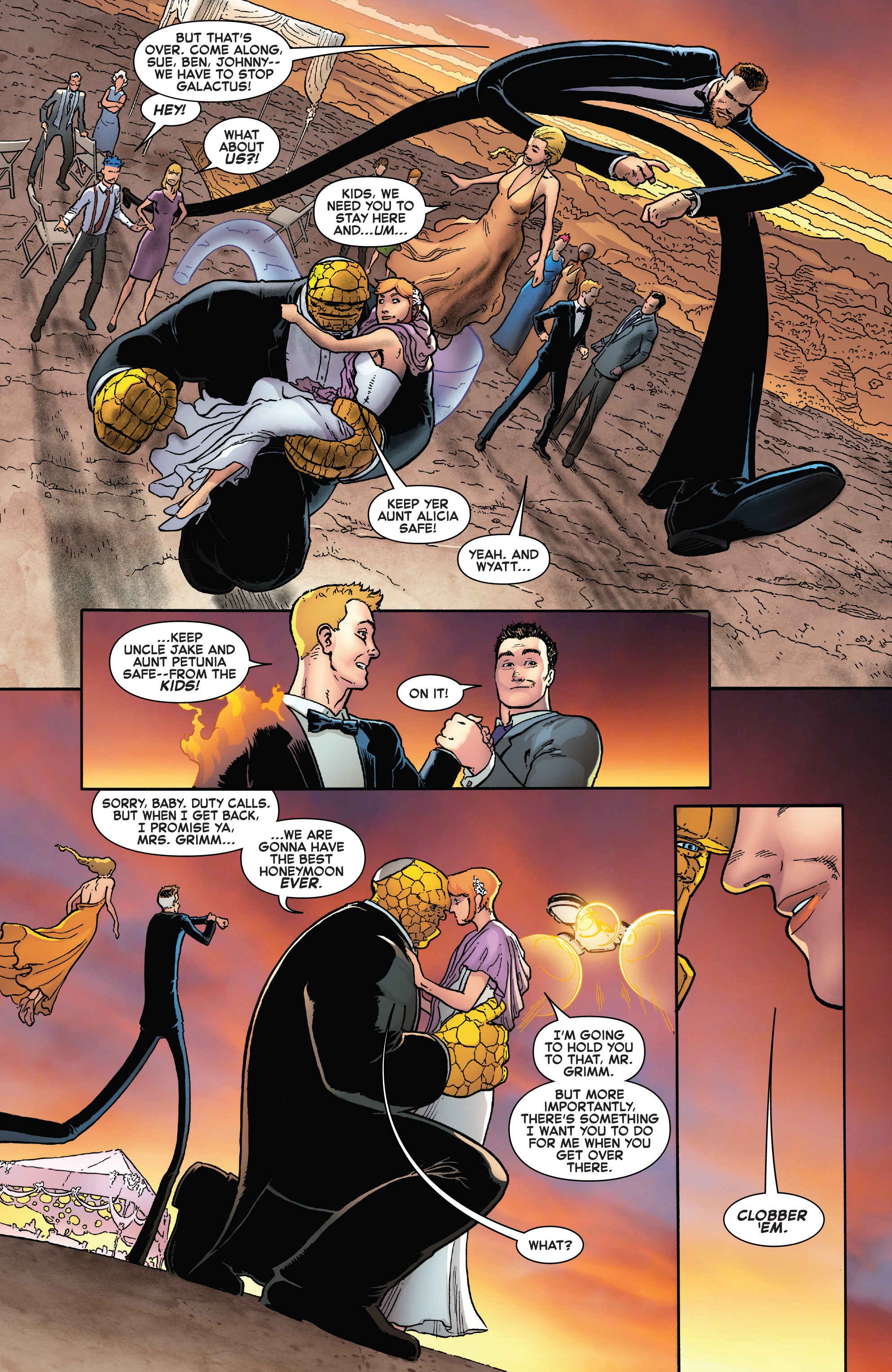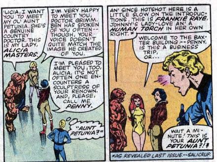Then again, Millar's run had so many WTF moments (Doom crediting his villainous career to a "master" and telling others about it, Ben making crude passes at a schoolteacher in front of her class, their jiffy-pop engagement/wedding, Future Sue risking her brother's life using him as a time machine battery, Reed's relatives trying to make human sacrifices of the kids, etc.) that I'm quite comfortable with it being excised from continuity by unanimous decision, no in-setting retcon explanation required.